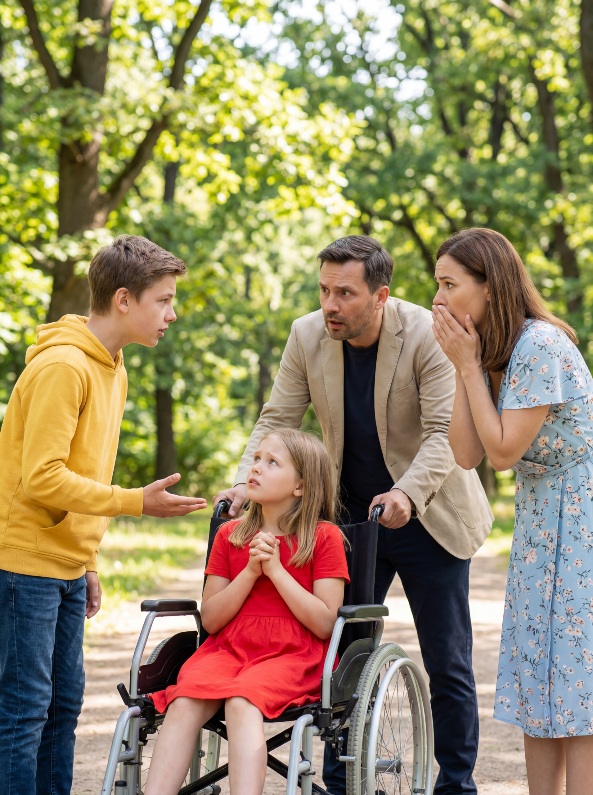 She sat in her wheelchair with her hands folded tightly in her lap, shoulders slightly hunched, gaze fixed outside as if she were waiting for something she wasn’t sure was allowed to arrive.