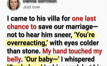 I came to his villa for one last chance to save our marriage—not to hear him sneer, ‘You’re overreacting,’ with eyes colder than stone. My hand touched my belly. ‘Our baby—’ I whispered, but his fingers slammed into my shoulders, and the world vanished beneath me. As I hit the floor, I heard his breath at my ear: ‘Stay quiet.’ Then, through the blur, I saw it—a tiny red light blinking in the corner. It had recorded everything